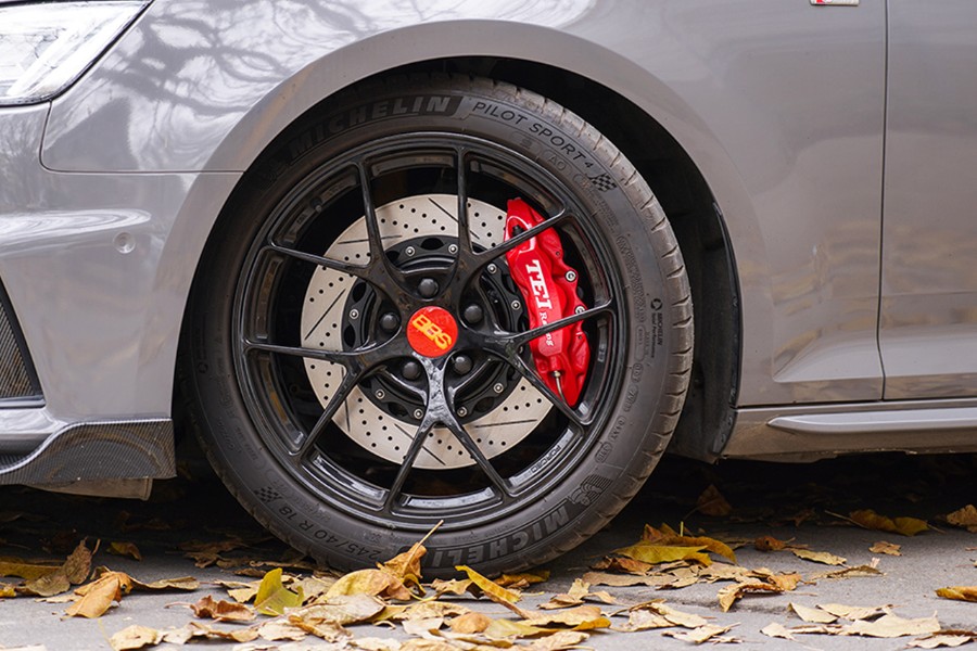 升级TEI Racing刹车系统不仅能提升整体制动性能,保障驾驶安全。同时亮眼的刹车卡钳和大号刹车盘也可以让车身整体运动性得到大大的提升。还有饱满的轮毂效果和鲜艳的颜色也让奥迪A4B9整体上看起来更加丰盈饱满。