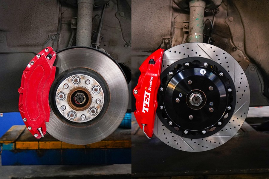 本田英思派前轮刹车改装TEI Racing刹车套件/改装P40NS四活塞刹车卡钳车主TEI Racing刹车2021/5/21 16:42:16车友评论(0)添加收藏改装车型:本田英思派前轮刹车:改装P40NS红色大四活塞卡钳,搭配355x28mm打孔划线纹分体盘;TEI Racing钢喉;DOT5.1刹车油。
